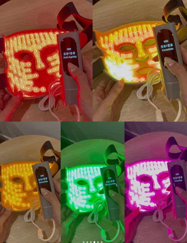 它是一体化光疗 解决方案,566 颗 LED 灯珠 + 6 种临床验证精准波长,5 种模式针对性超强,每次仅需10 分钟,懒人护肤太友好!
