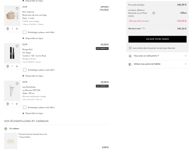 🎁 在迪奥、娇兰、YSL、兰蔻这些品牌消费满79€就送毛绒化妆包1个!