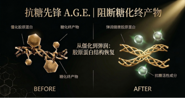 如果你平常用手摸着脸觉得“发硬、发黄”,那是糖化在搞鬼。A.G.E. 的逻辑非常清晰:通过高浓度玻色因+蓝莓提取物,强行拦截胶原蛋白的流失。肤感像冰淇淋,虽然没那么奢华,但效果极其“工业化”地稳定。