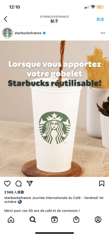 终于法国星巴克今天也可以免费喝咖啡啦!带星巴克杯子去就行!