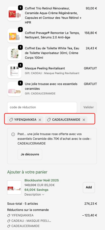 🎁 独家码可叠满70€送化妆包+金胶6件套!送礼码:CADEAUCERAMIDE,满100€加赠焕肤面膜!