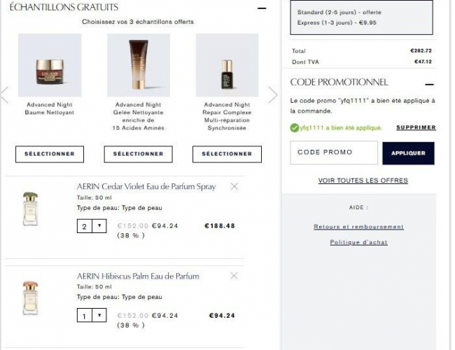 👉 购物车界面还可叠加自选试用装!满60€送自选2件,满120€送自选3件!