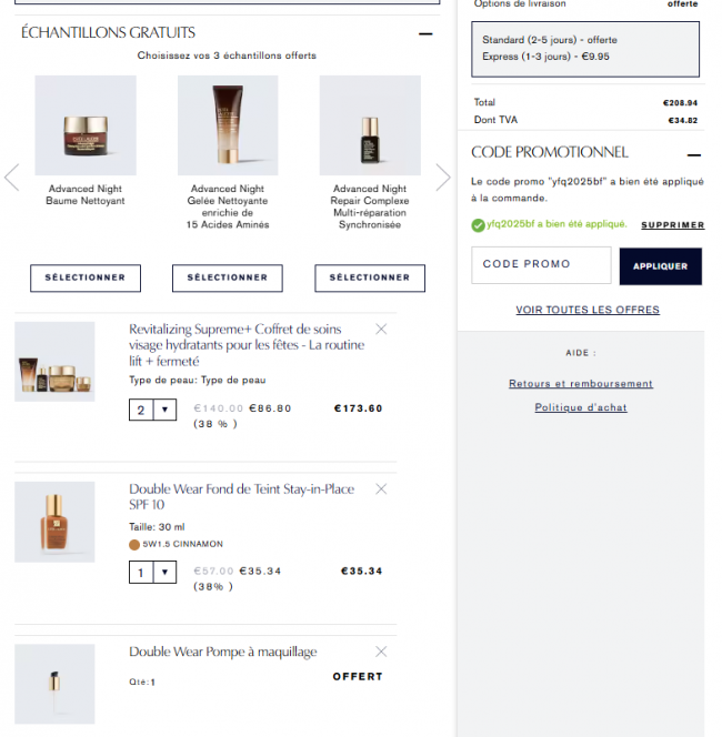 👉 购物车界面还可叠加自选试用装!满60€送自选2件,满120€送自选3件!