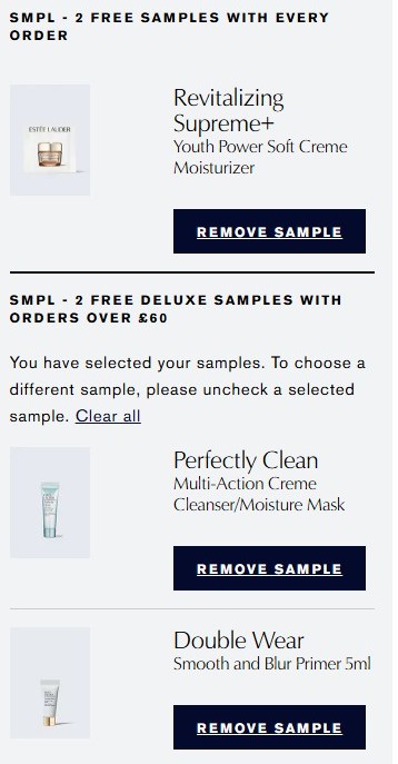 每单送1个试用!满£60可选2个中样!