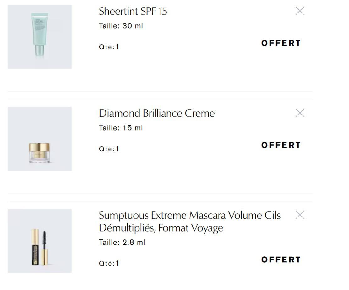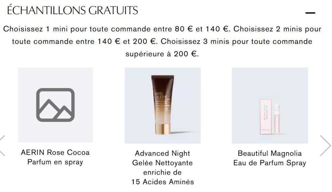 🌈 购物车界面满80€-140€可选1个试用装,满140€-200€可选2个试用装,超过200€可选3个试用装