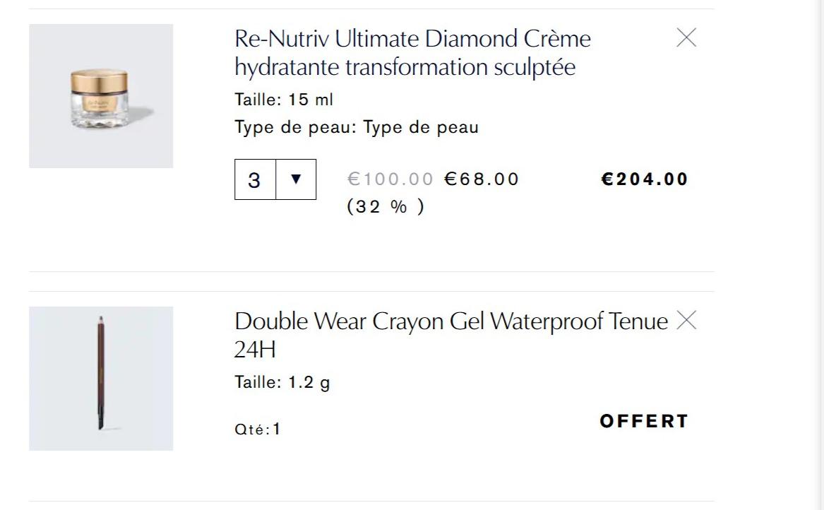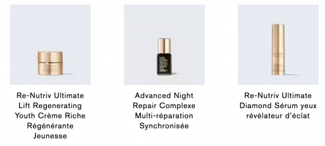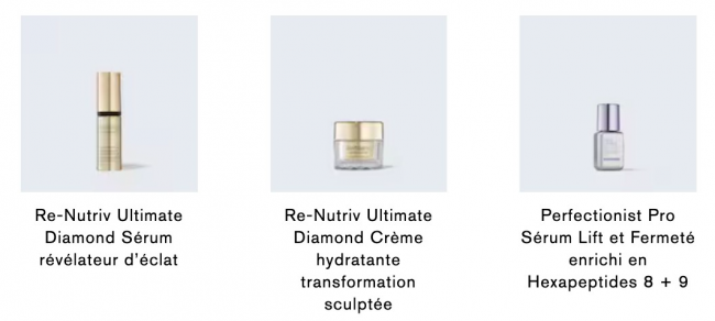 含:黑钻眼精华5ml(78€)、黑钻精华5ml(54€)、黑钻面霜7ml(75€)、线雕精华15ml(63€)选大的、白金面霜7ml(57€)、小棕瓶精华7ml(25€)、智妍眼霜3ml(18€)、智妍面霜5ml(15€)、原生液15ml(11€)等!