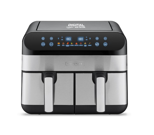 9 升大容量搭配双独立炸篮,可同时烹饪主菜与配菜,避免串味还能节省一半时间,轻松满足 6 人用餐需求~