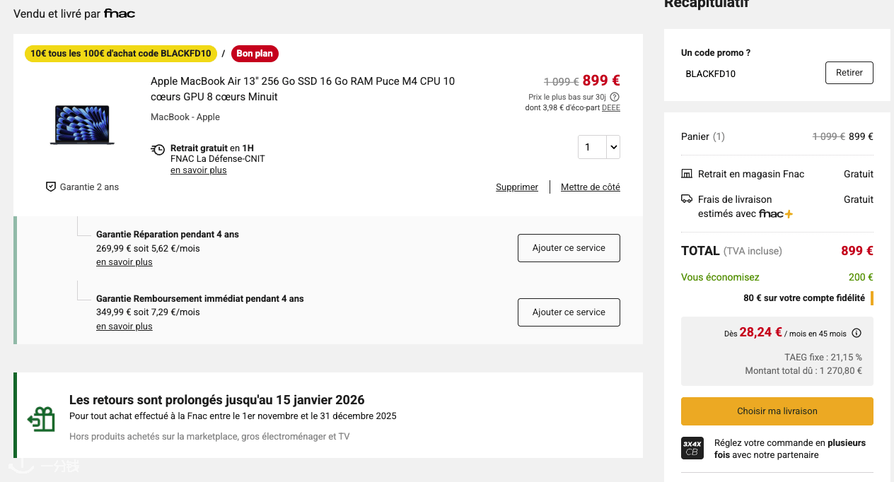 ⚠️ 非 FNAC 会员可参考 黑五享 4.99€ 办理 FNAC 年会员>>