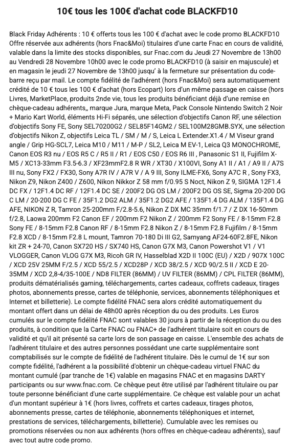 Fnac 家 FNAC会员黑五盛典来袭,折扣码 BLACKFD10 ,每满100€返10€相当于全场9折。