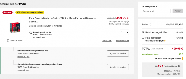 👉 购买Switch 2 + Mario Kart 套盒 >> 即享立减40欧➕再返60欧!!(仅限 FNAC 会员)