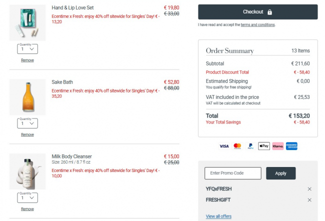 🎁 折后满100€独家加赠正装唇油(价值22€)!送礼码:YFQxFRESH