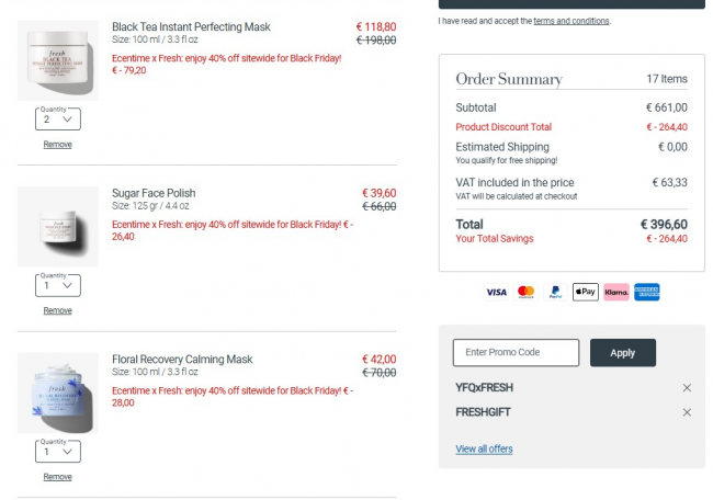 🎁 折后满100€独家加赠50ml大豆洁面+7ml红茶普拉提精华!价值35€!送礼码:YFQxFRESH