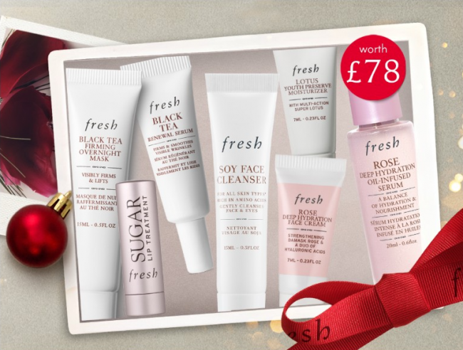 🔥火速捡漏👉Fresh官网75折起➕无门槛送£78豪礼🎁£36收大豆洁面+红茶面霜到手9件!
