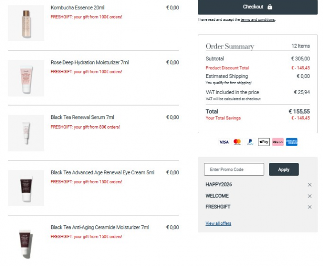 满100€送7ml红茶普拉提精华➕ 20ml红茶酵母精粹水➕7ml玫瑰保湿面霜,价值41€