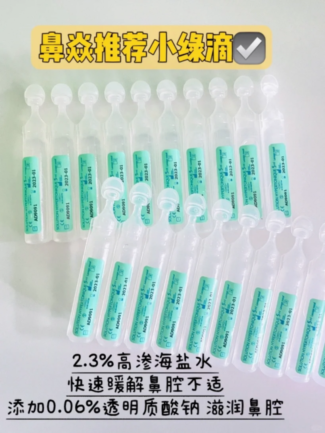 💚高渗小绿滴: 2.3%高渗盐水,鼻焱时用,快速缓解 添加0.06%透明质酸钠,滴滴滋润!