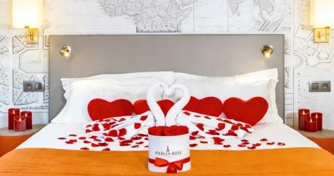 ✔ 房间浪漫布置(天鹅毛巾、心形装饰、玫瑰花瓣、蜡烛)