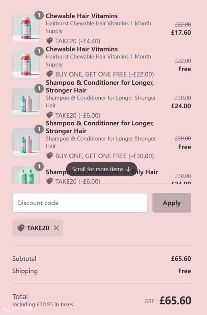 护发界大魔王Hairburst 惊现老板跳楼价!全场买1送1+额外8折(8折折扣码:TAKE20)怎么一不小心就4折!!