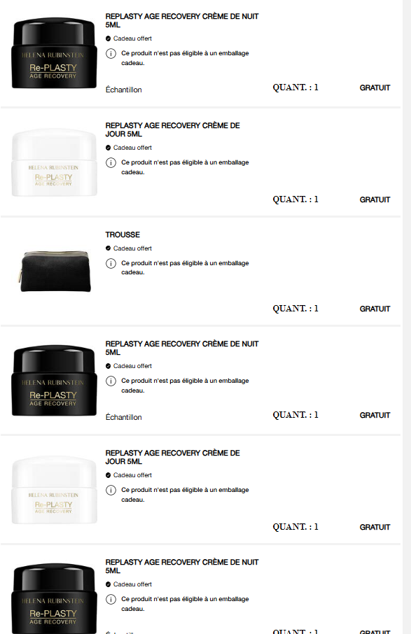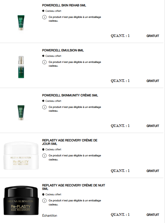 折后满300€送8件,满450€送11件含35ml黑白绷带,满500€加送100ml正装新肌水