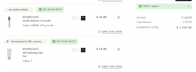 【马上有钱】Hourglass全线8折🎀白鹿同款小金管固体唇蜜32€收!各大博主爱用👉遮瑕液34€