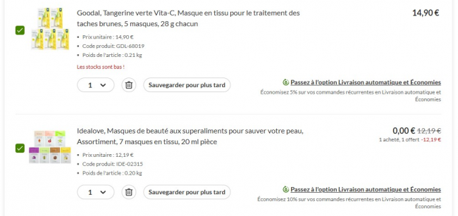 iHerb官网买1送1专区 >>面膜买一送一啦!折合下来不到1€/片,性价比绝了!