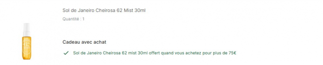 🎁 全场满75€就送Sol de Janeiro家62号身体喷雾30ml!礼赠随时变动,具体以购物车为准!