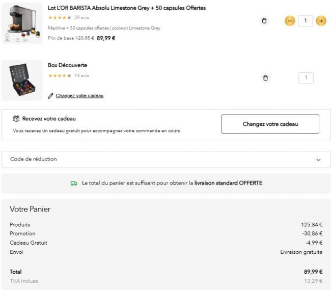 ☕️ 74.99欧即可获得全套咖啡装备 > = 1 台全新L'OR BARISTA SUBLIME 咖啡机 + 200颗胶囊!满足你的多重咖啡需求!