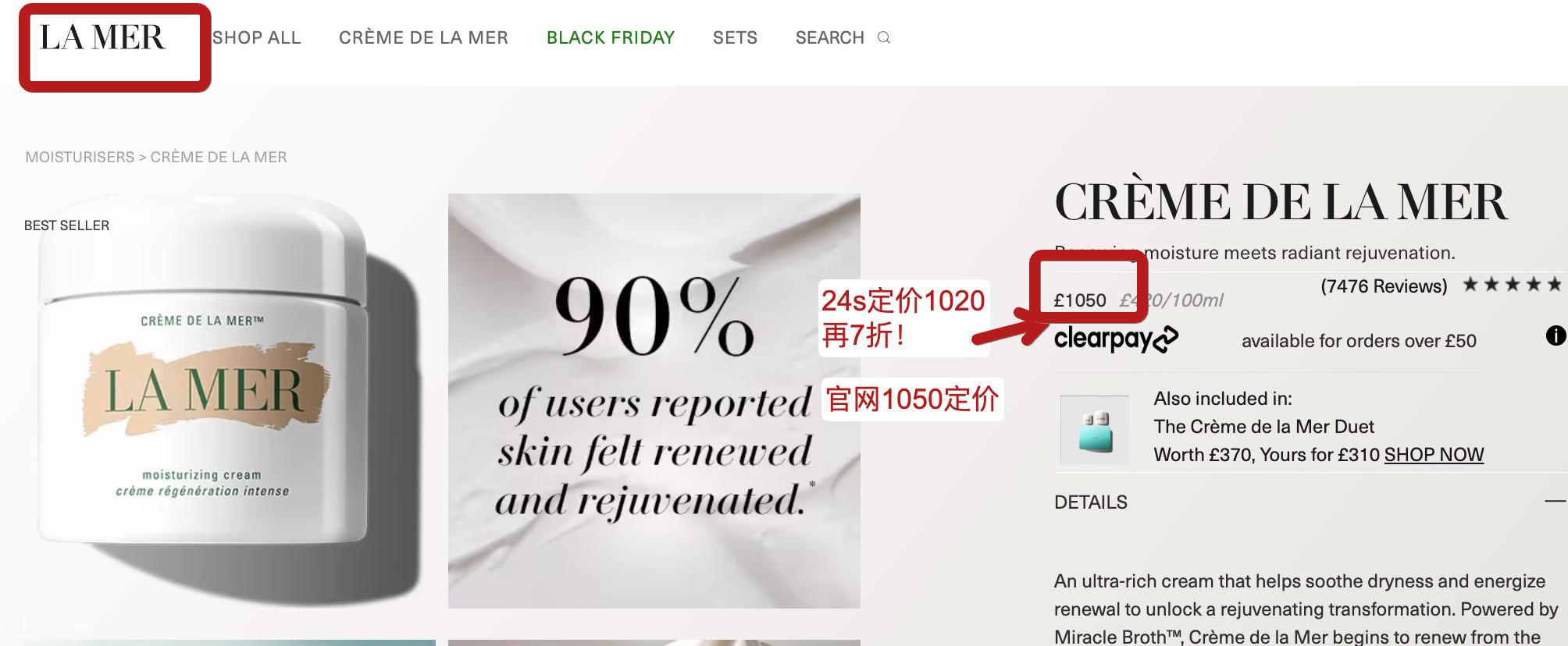 👉🏻 经典面霜250ml >> 定价比官网低£30!还有7折!立省£336!过于划算,手慢就无!
