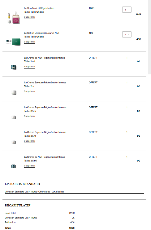 包含:紧塑刀精华3ml(41€)、柔酸油5ml(48€)、奇迹面霜3.5ml(27€)、奇迹晚霜3.5ml(28€)等!