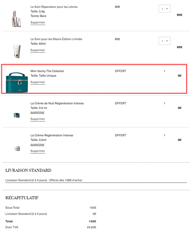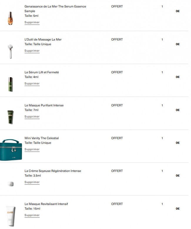 包含:紧塑刀精华3ml(41€)、柔酸油5ml(48€)、奇迹面霜3.5ml(27€)、奇迹晚霜3.5ml(28€)等!