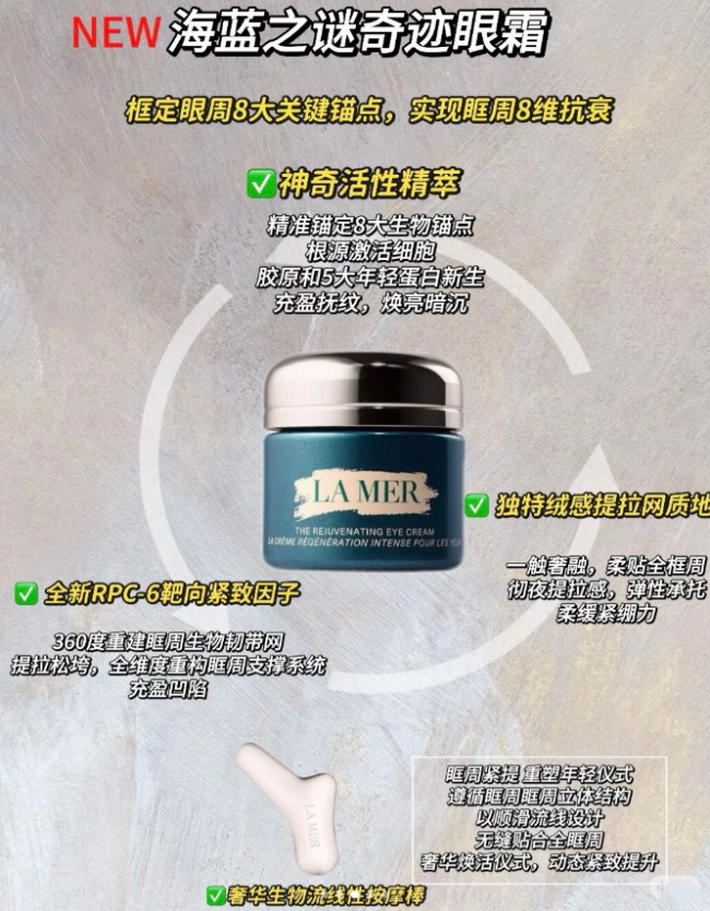 ⭐LA MER提出重磅「生物眼体工学」 黑科技揭开眶周重塑的关键在于锚定8大生物锚点,360°收紧眶周提拉网 眶周重塑,1夜8重抗老