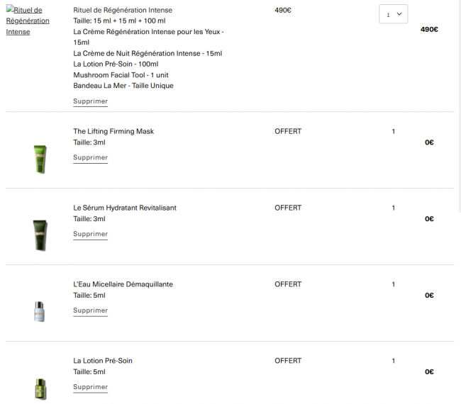 包含:紧塑刀精华3ml(41€)、奇迹面霜3.5ml(27€)、奇迹晚霜3.5ml(28€)等!