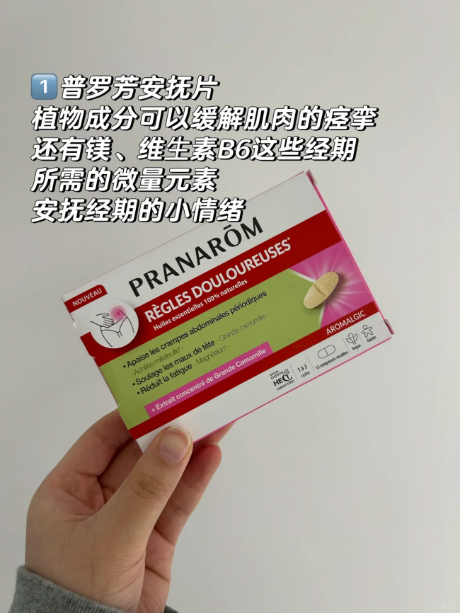 另外还有一些比如说薰衣草精油,还有镁、维⽣素B6这些经期所需的微量元素,能够安抚经期的小情绪!