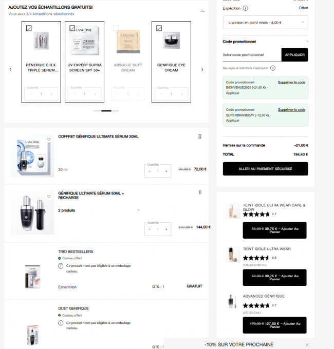 兰蔻官网无门槛67折➕叠送8件🔥断货王洁面慕斯补货☁️100ml超修小黑瓶128€💗圣诞限定全部上线!