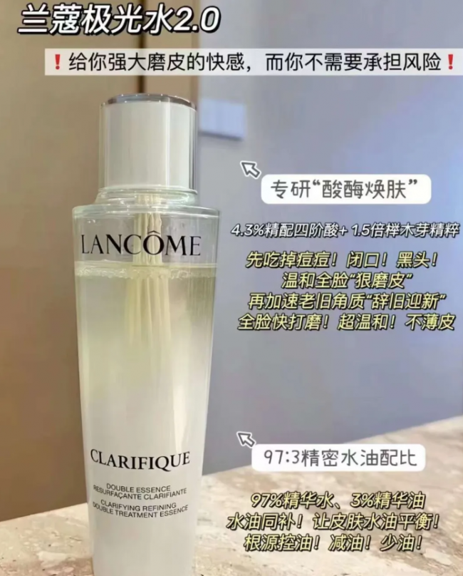 油皮狂喜水油分层的质地 用前要记得先横向摇匀 我还会用它浸湿化收棉擦在粗糙有黑头闭口的地方擦完脸蛋摸起来嫩的