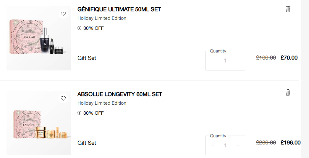 ❄️兰蔻官网大促【圣诞礼盒解禁】全场7折👏全新菁纯60ml礼盒仅£196!50ml超修小黑瓶礼盒£70!