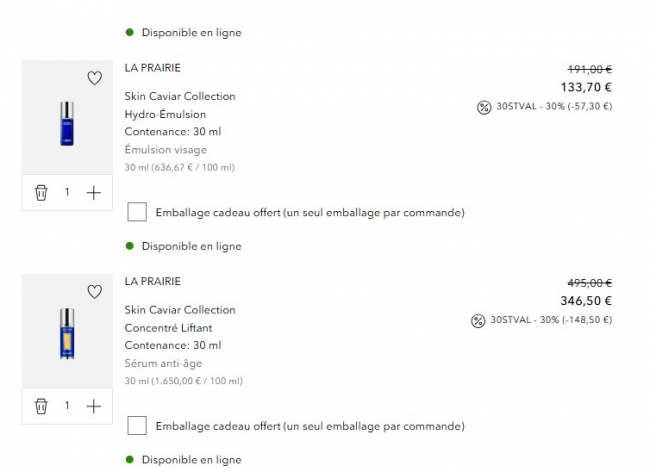 Nocibe家La Prairie品牌专区 >>全场7折!部分单品自带5折!74€就能体验贵妇护肤!