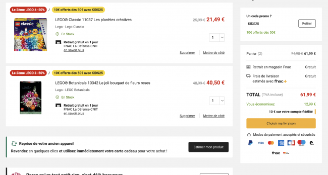👉 单笔订单折后满50欧还可立减10欧(折扣码:KIDS25)优惠力度超值。(必须是 FNAC 会员才可以享有)