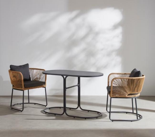 采用深灰色铝制框架搭配米色藤编树脂,轻盈耐用又防腐防锈。