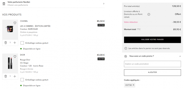 Nocibe全场>> 满49€全场7折码:30FALL