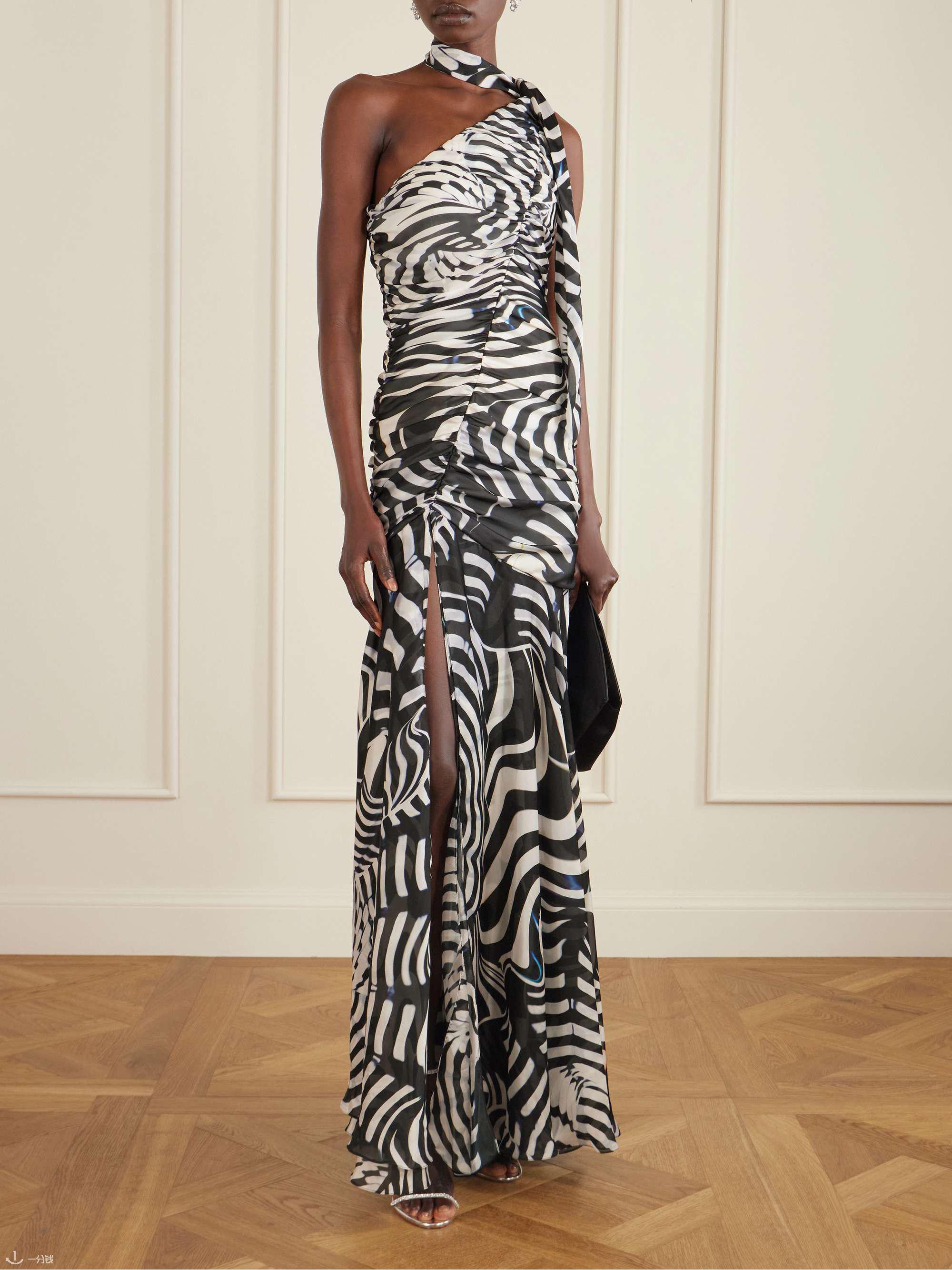 MARY KATRANTZOU|阿利娅单肩斑马纹雪纺长裙