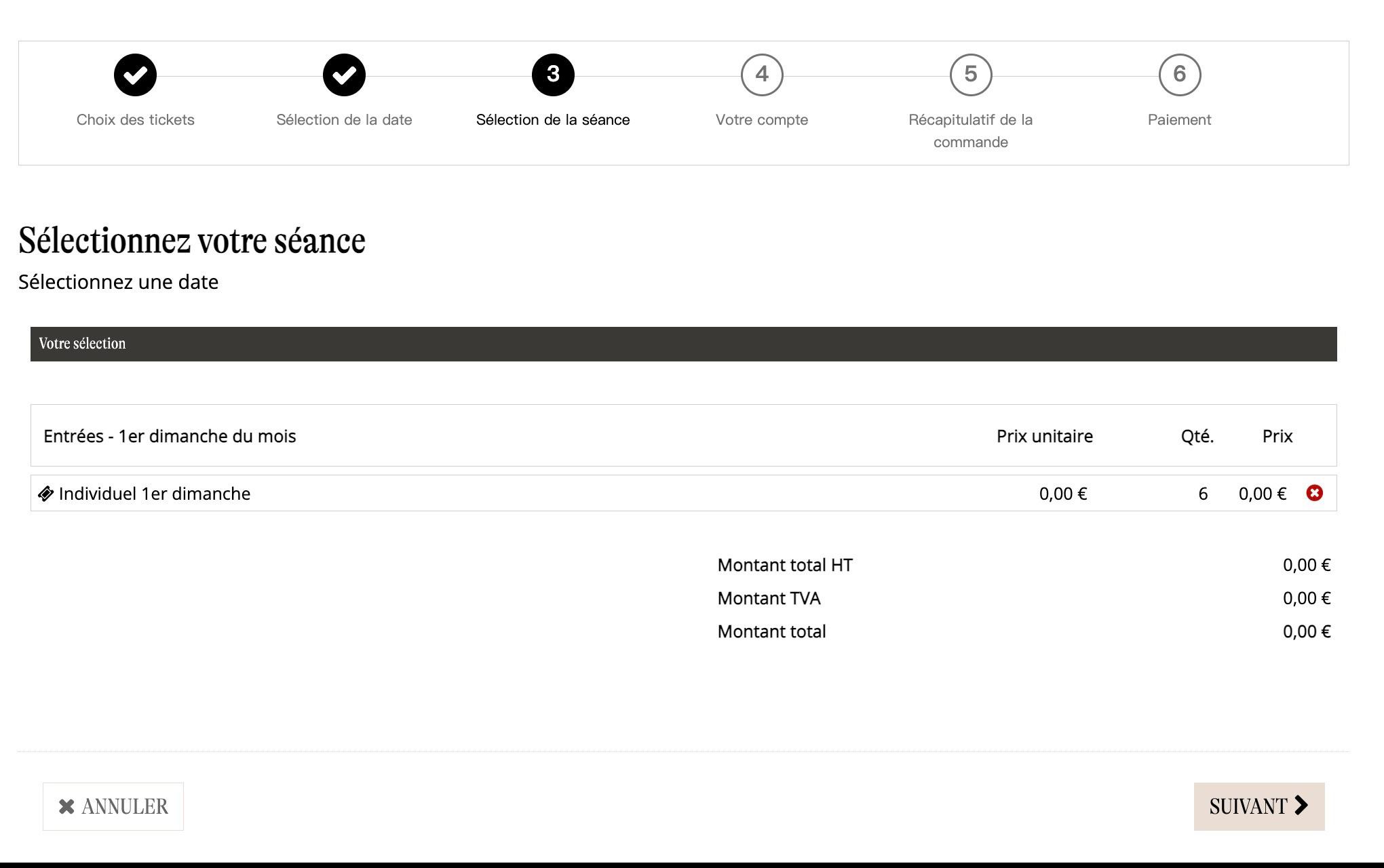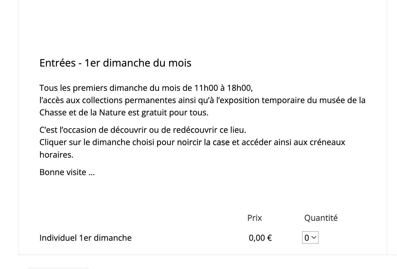 2. 选择“Entrées - 1er dimanche du mois”专区,选定人数