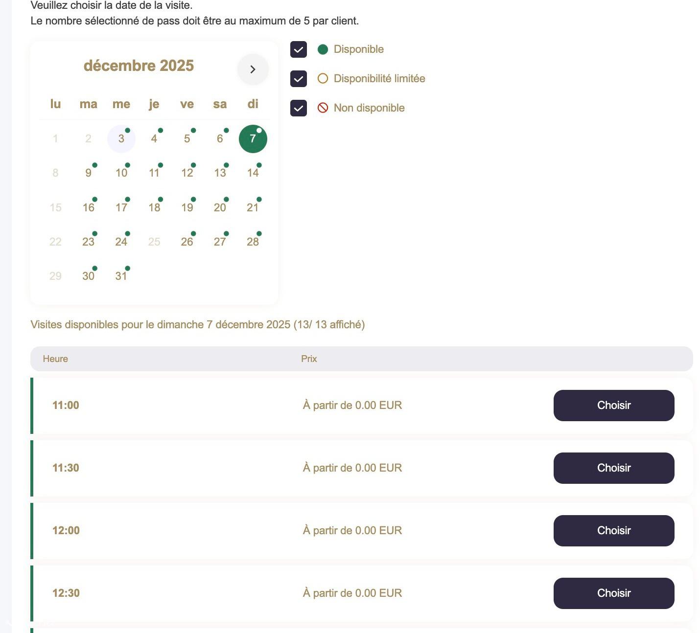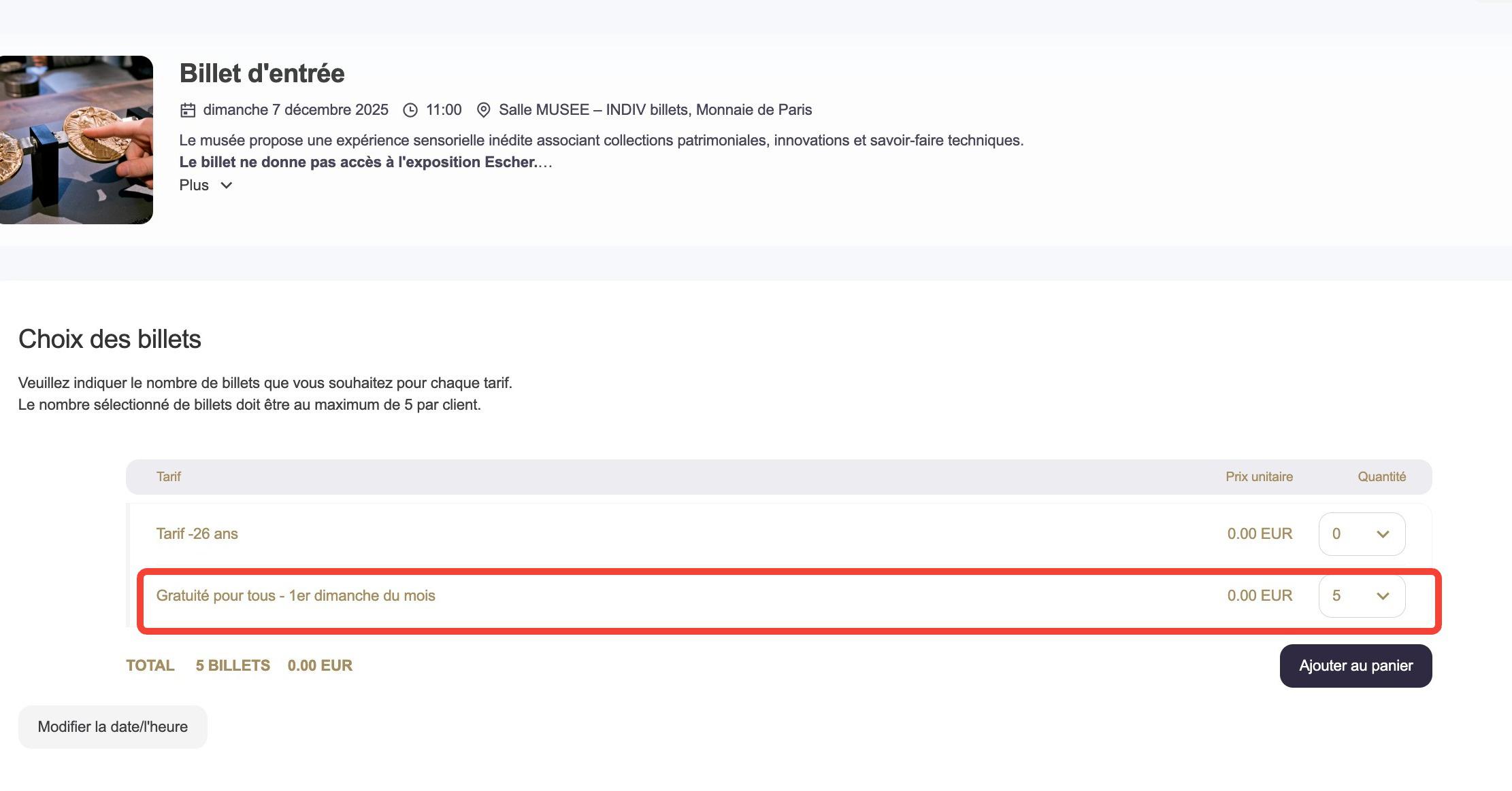 3. 进入人数选择页面-- 在1er dimanche du mois 选择人数即可。(最多可以选5人)