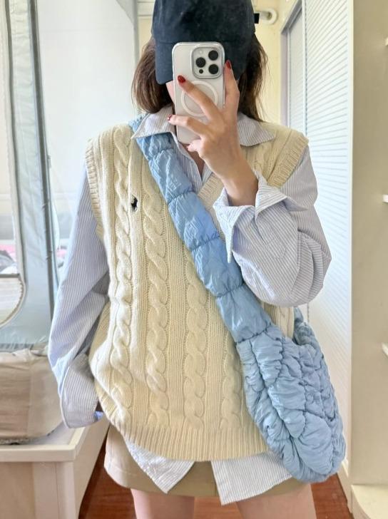 V 领刚好露锁骨,叠穿衬衫秒变“美式老钱风”,属于衣柜里怎么穿都不会翻车的那种