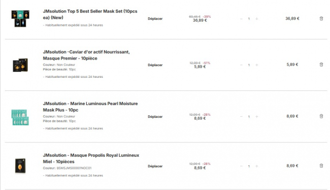 👉 畅销面膜5件*10片 >>50片到手29€!均价0.5€每片!