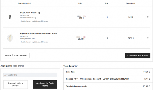 登录会员账号无门槛折上82折;满69€精选护肤折上78折!游客无门槛折上9折!