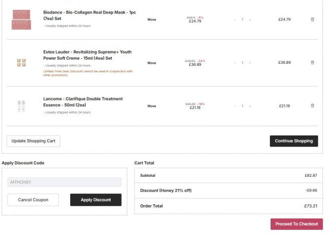 满78€折上79折!折扣码:AFFHONEY