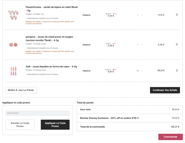 满78€折上8折!折扣码:AFFHONEY