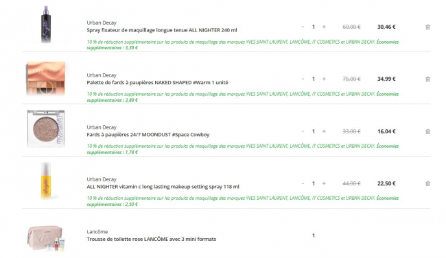 🎁 YSL、兰蔻、Urban Decay、IT COSMETICS这4个品牌满90€再送4件套!