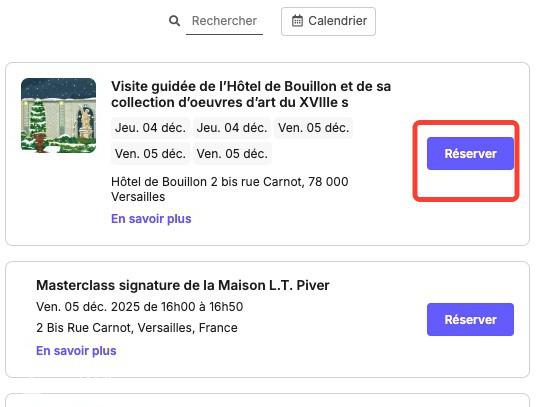2. 选择感兴趣的活动场次,点击“Réserver”按钮,填写基本信息