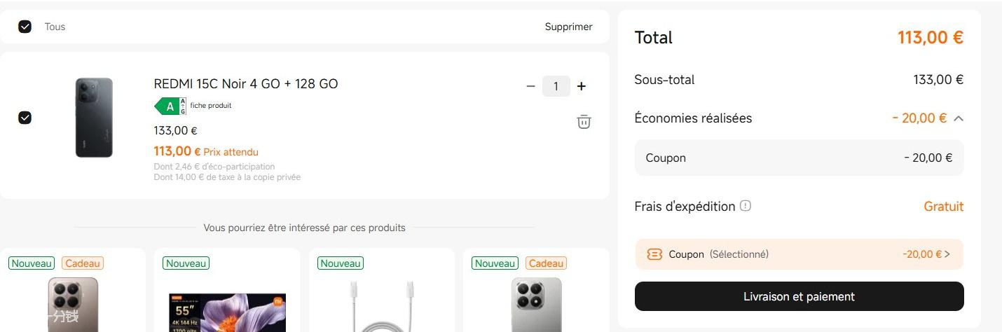 1.仅限智能手机/平板电脑:满129€-20€,满69€-15€(POCO M7 除外),满29€-5€(POCO M7 除外)。变相折上84折!